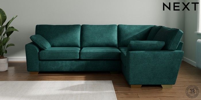 7.3.1 Buy Stamford Large Corner Sofa - Right Hand Plush Chenille Dark Teal Green Large Square Angle - Brushed Brass from the Seasons online shop Click here to use our website with more accessibility support, for example screen readers