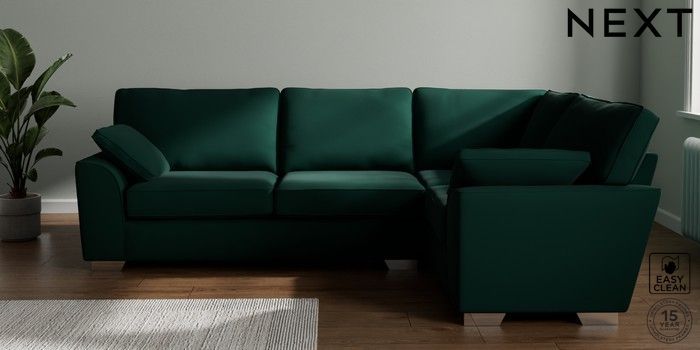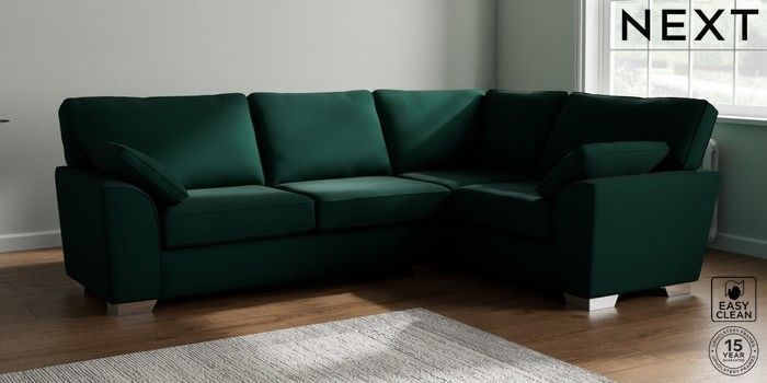 7.3.1 Buy Stamford Large Corner Sofa - Right Hand Plush Velvet Easy Clean Bottle Green Large Square Angle - Chrome Metal from the Seasons online shop Click here to use our website with more accessibility support, for example screen readers