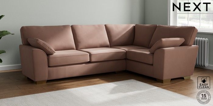 7.3.1 Buy Stamford Large Corner Sofa - Right Hand Plush Velvet Easy Clean Mid Natural Large Square Angle - Brushed Brass from the Seasons online shop Click here to use our website with more accessibility support, for example screen readers
