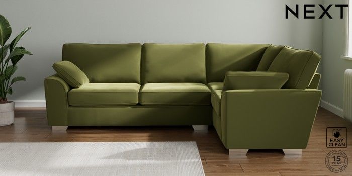 7.3.1 Buy Stamford Large Corner Sofa - Right Hand Plush Velvet Easy Clean Mid Olive Green Large Square Angle - Chrome Metal from the Seasons online shop Click here to use our website with more accessibility support, for example screen readers
