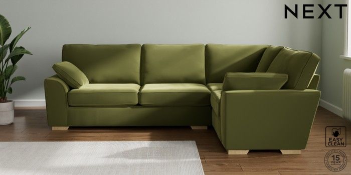 7.3.1 Buy Stamford Large Corner Sofa - Right Hand Plush Velvet Easy Clean Mid Olive Green Large Square Angle - Light from the Seasons online shop Click here to use our website with more accessibility support, for example screen readers