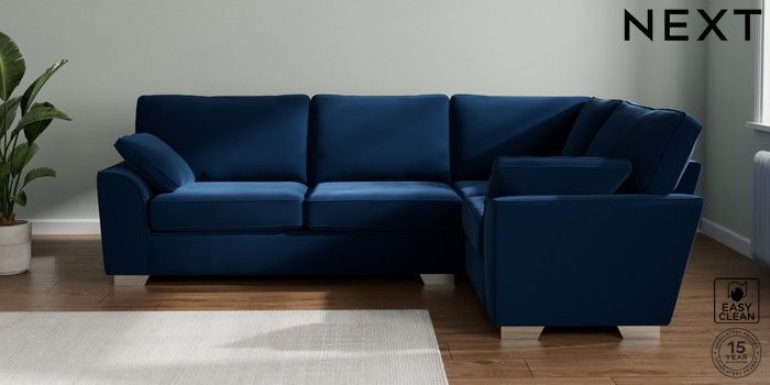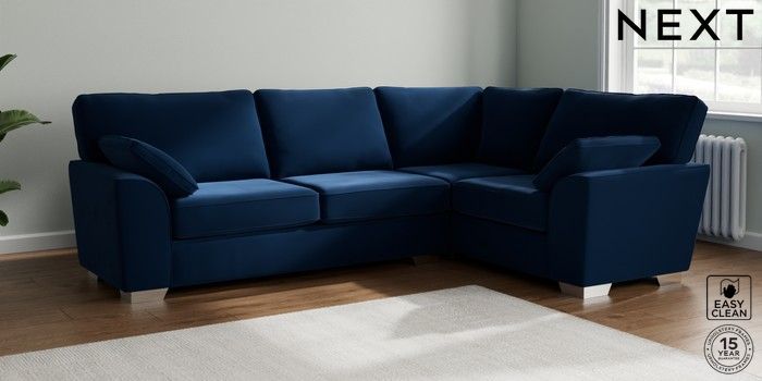 7.3.1 Buy Stamford Large Corner Sofa - Right Hand Plush Velvet Easy Clean Navy Blue Large Square Angle - Chrome Metal from the Seasons online shop Click here to use our website with more accessibility support, for example screen readers