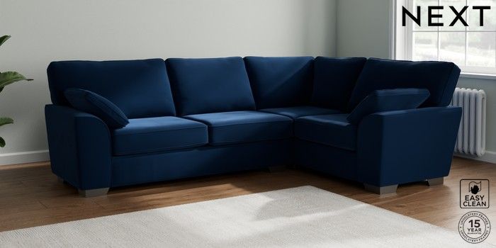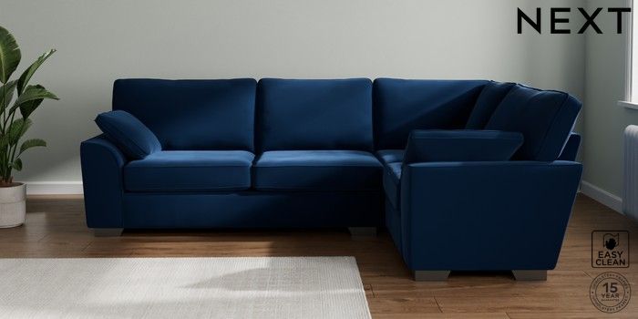7.3.1 Buy Stamford Large Corner Sofa - Right Hand Plush Velvet Easy Clean Navy Blue Large Square Angle - Gunmetal from the Seasons online shop Click here to use our website with more accessibility support, for example screen readers
