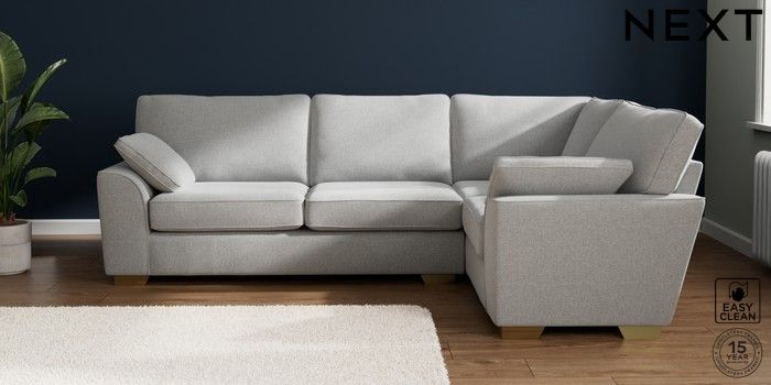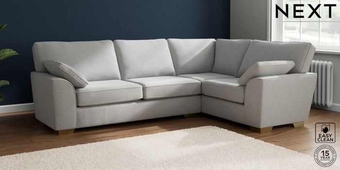 7.3.1 Buy Stamford Large Corner Sofa - Right Hand Tweedy Blend Easy Clean Light Silver Grey Large Square Angle - Brushed Brass from the Seasons online shop Click here to use our website with more accessibility support, for example screen readers