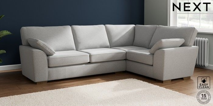 7.2.10 Buy Stamford Large Corner Sofa - Right Hand Tweedy Blend Easy Clean Light Silver Grey Large Square Angle - Mid from the Seasons online shop Click here to use our website with more accessibility support, for example screen readers