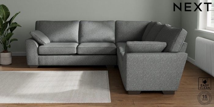 7.3.1 Buy Stamford Large Corner Sofa - Universal Chunky Boucle Easy Clean Mid Grey Large Square Angle - Gunmetal from the Seasons online shop Click here to use our website with more accessibility support, for example screen readers