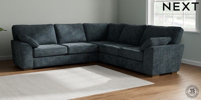 7.2.10 Buy Stamford Large Corner Sofa - Universal Chunky Chenille Dark Navy Blue Large Square Angle - Mid from the Seasons online shop Click here to use our website with more accessibility support, for example screen readers