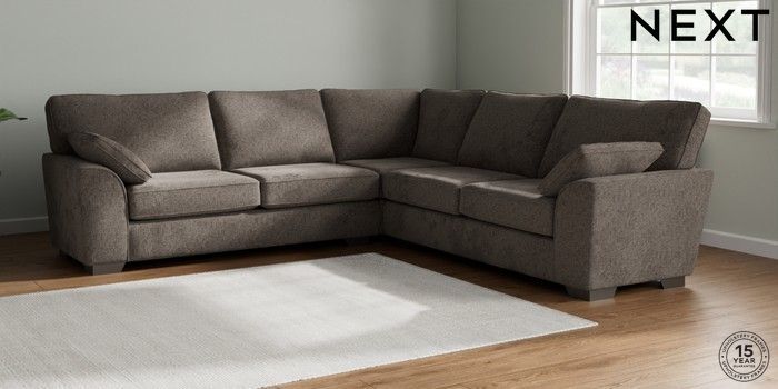7.3.1 Buy Stamford Large Corner Sofa - Universal Chunky Chenille Mink Brown Large Square Angle - Gunmetal from the Seasons online shop Click here to use our website with more accessibility support, for example screen readers