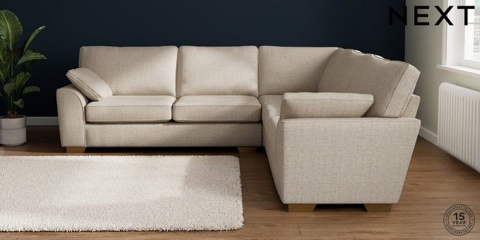 7.2.10 Buy Stamford Large Corner Sofa - Universal Chunky Weave Mid Natural Large Square Angle - Brushed Brass from the Seasons online shop Click here to use our website with more accessibility support, for example screen readers