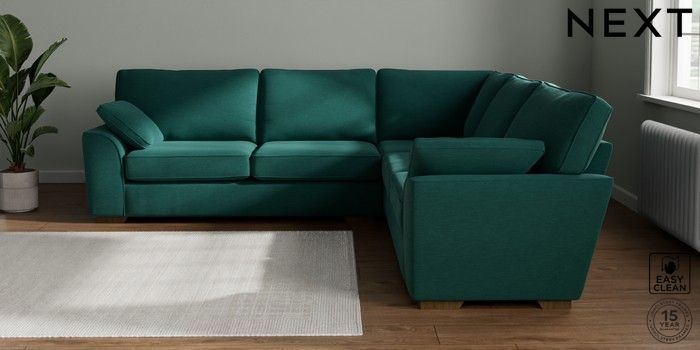 7.2.10 Buy Stamford Large Corner Sofa - Universal Fine Chenille Easy Clean Dark Juniper Green Large Square Angle - Mid from the Seasons online shop Click here to use our website with more accessibility support, for example screen readers