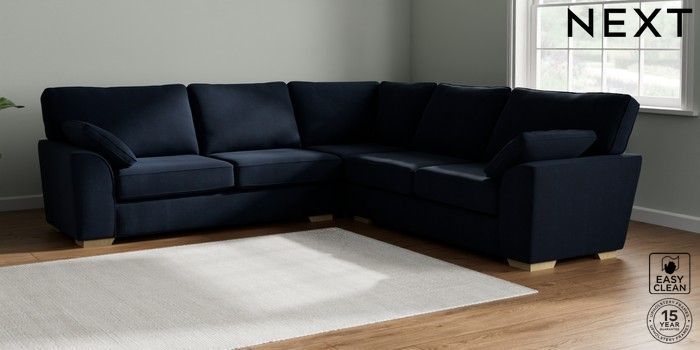 7.2.10 Buy Stamford Large Corner Sofa - Universal Fine Chenille Easy Clean Dark Navy Blue Large Square Angle - Light from the Seasons online shop Click here to use our website with more accessibility support, for example screen readers