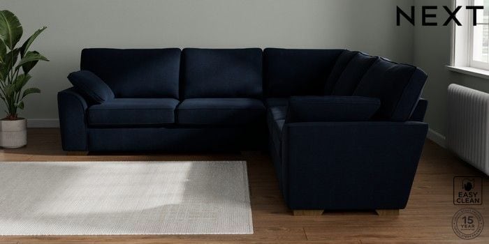 7.2.10 Buy Stamford Large Corner Sofa - Universal Fine Chenille Easy Clean Dark Navy Blue Large Square Angle - Mid from the Seasons online shop Click here to use our website with more accessibility support, for example screen readers