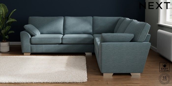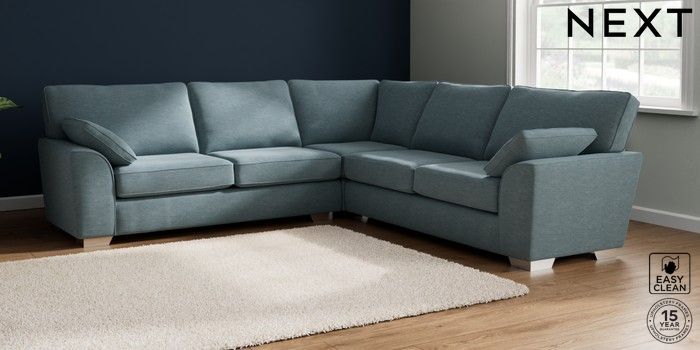 7.2.10 Buy Stamford Large Corner Sofa - Universal Fine Chenille Easy Clean Mid Blue Large Square Angle - Chrome Metal from the Seasons online shop Click here to use our website with more accessibility support, for example screen readers