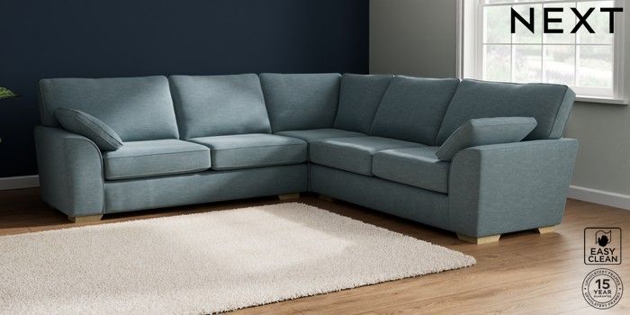 7.2.10 Buy Stamford Large Corner Sofa - Universal Fine Chenille Easy Clean Mid Blue Large Square Angle - Light from the Seasons online shop Click here to use our website with more accessibility support, for example screen readers