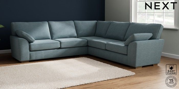 7.2.10 Buy Stamford Large Corner Sofa - Universal Fine Chenille Easy Clean Mid Blue Large Square Angle - Mid from the Seasons online shop Click here to use our website with more accessibility support, for example screen readers