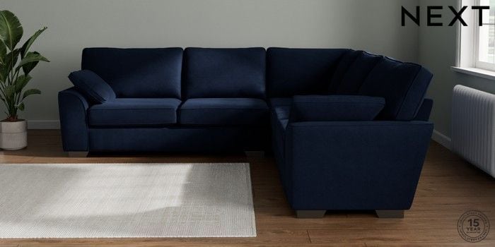 7.3.1 Buy Stamford Large Corner Sofa - Universal Luxe Chenille Navy Blue Large Square Angle - Gunmetal from the Seasons online shop Click here to use our website with more accessibility support, for example screen readers