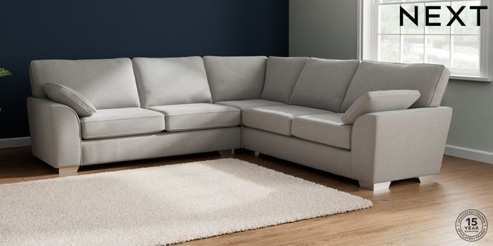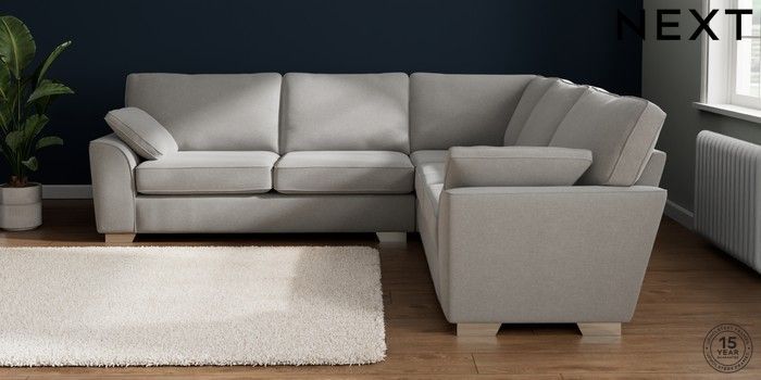 7.2.10 Buy Stamford Large Corner Sofa - Universal Natural Mix Light Grey Large Square Angle - Chrome Metal from the Seasons online shop Click here to use our website with more accessibility support, for example screen readers