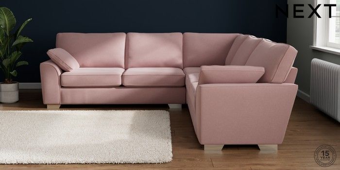 7.3.1 Buy Stamford Large Corner Sofa - Universal Natural Mix Light Rose Pink Large Square Angle - Chrome Metal from the Seasons online shop Click here to use our website with more accessibility support, for example screen readers