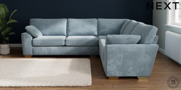 7.2.10 Buy Stamford Large Corner Sofa - Universal Plush Chenille Light Blue Large Square Angle - Brushed Brass from the Seasons online shop Click here to use our website with more accessibility support, for example screen readers