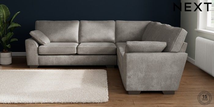 7.2.10 Buy Stamford Large Corner Sofa - Universal Plush Chenille Light Grey Large Square Angle - Gunmetal from the Seasons online shop Click here to use our website with more accessibility support, for example screen readers