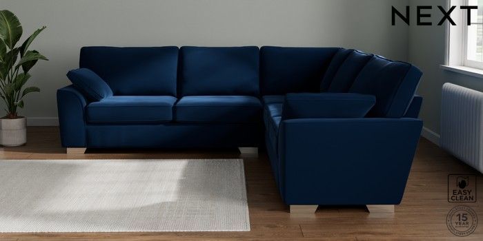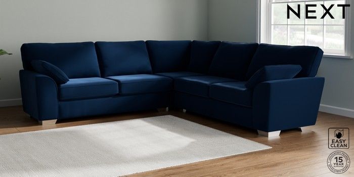 7.3.1 Buy Stamford Large Corner Sofa - Universal Plush Velvet Easy Clean Navy Blue Large Square Angle - Chrome Metal from the Seasons online shop Click here to use our website with more accessibility support, for example screen readers
