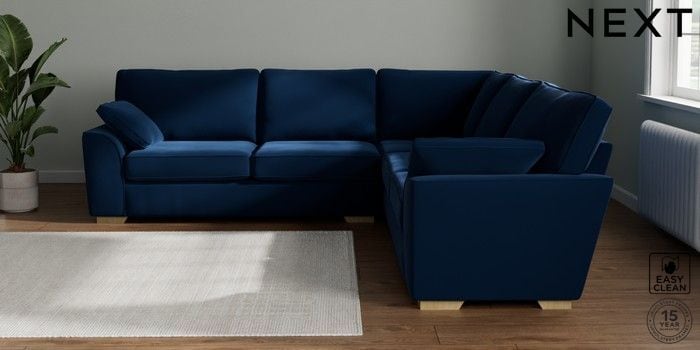 7.2.10 Buy Stamford Large Corner Sofa - Universal Plush Velvet Easy Clean Navy Blue Large Square Angle - Light from the Seasons online shop Click here to use our website with more accessibility support, for example screen readers