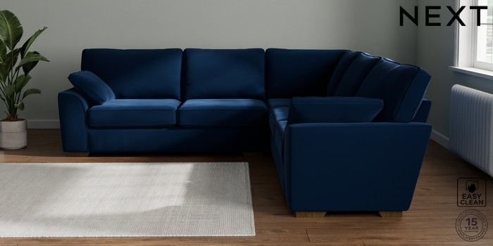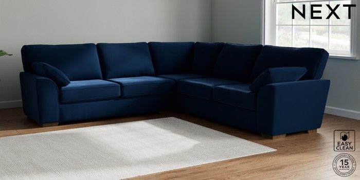 7.3.1 Buy Stamford Large Corner Sofa - Universal Plush Velvet Easy Clean Navy Blue Large Square Angle - Mid from the Seasons online shop Click here to use our website with more accessibility support, for example screen readers