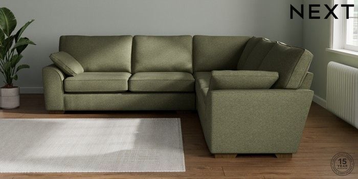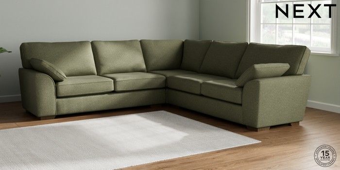 7.2.10 Buy Stamford Large Corner Sofa - Universal Tweedy Chenille Mid Moss Green Large Square Angle - Mid from the Seasons online shop Click here to use our website with more accessibility support, for example screen readers