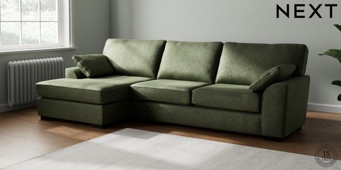 7.2.10 Buy Stamford Large Sofa Chaise - Left Hand Boucle Chenille Dark Moss Green Large Square Angle - Dark from the Seasons online shop Click here to use our website with more accessibility support, for example screen readers