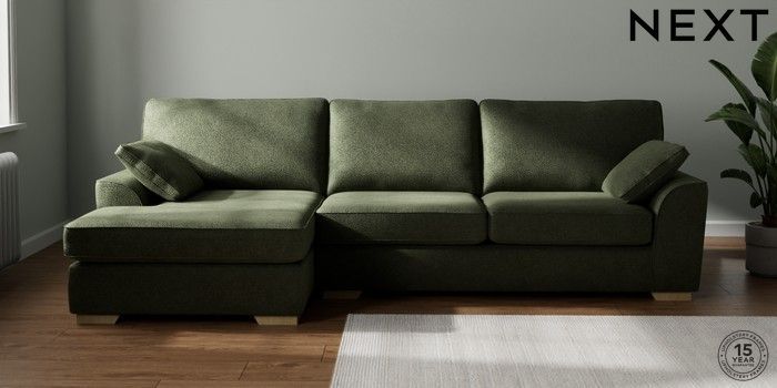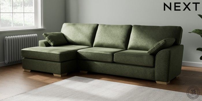 7.2.10 Buy Stamford Large Sofa Chaise - Left Hand Boucle Chenille Dark Moss Green Large Square Angle - Light from the Seasons online shop Click here to use our website with more accessibility support, for example screen readers