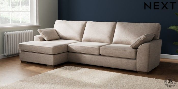 7.2.10 Buy Stamford Large Sofa Chaise - Left Hand Boucle Chenille Light Natural Large Square Angle - Mid from the Seasons online shop Click here to use our website with more accessibility support, for example screen readers
