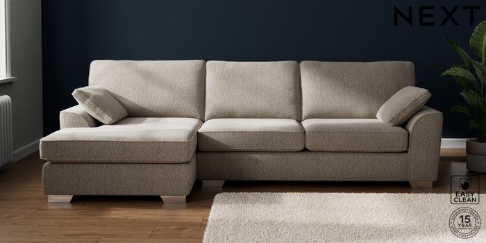7.3.1 Buy Stamford Large Sofa Chaise - Left Hand Chunky Boucle Easy Clean Dove Large Square Angle - Chrome Metal from the Seasons online shop Click here to use our website with more accessibility support, for example screen readers