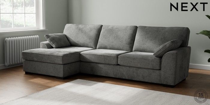 7.2.10 Buy Stamford Large Sofa Chaise - Left Hand Chunky Chenille Dark Grey Large Square Angle - Dark from the Seasons online shop Click here to use our website with more accessibility support, for example screen readers