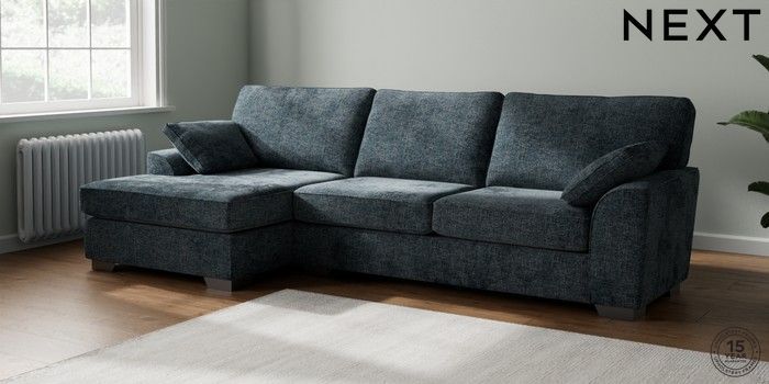 7.3.1 Buy Stamford Large Sofa Chaise - Left Hand Chunky Chenille Dark Navy Blue Large Square Angle - Gunmetal from the Seasons online shop Click here to use our website with more accessibility support, for example screen readers