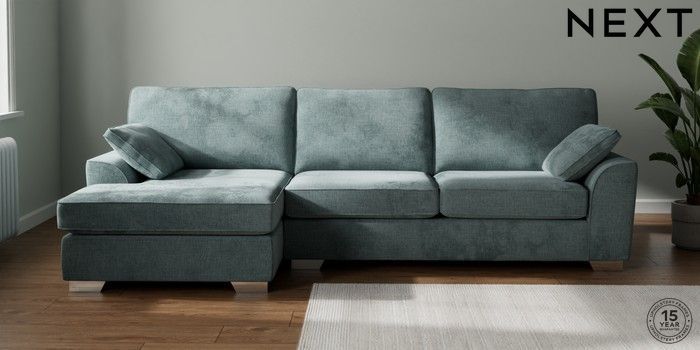 7.3.1 Buy Stamford Large Sofa Chaise - Left Hand Chunky Chenille Light Teal Green Large Square Angle - Chrome Metal from the Seasons online shop Click here to use our website with more accessibility support, for example screen readers