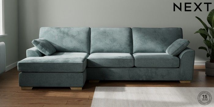 7.2.10 Buy Stamford Large Sofa Chaise - Left Hand Chunky Chenille Light Teal Green Large Square Angle - Light from the Seasons online shop Click here to use our website with more accessibility support, for example screen readers