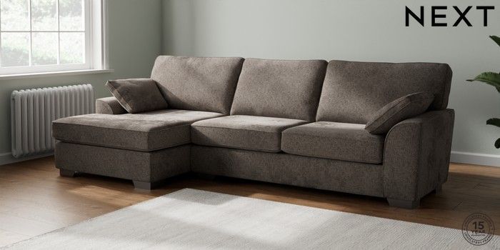 7.3.1 Buy Stamford Large Sofa Chaise - Left Hand Chunky Chenille Mink Brown Large Square Angle - Gunmetal from the Seasons online shop Click here to use our website with more accessibility support, for example screen readers