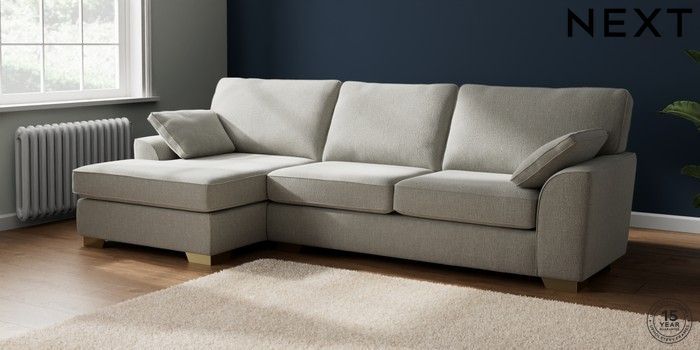 7.2.10 Buy Stamford Large Sofa Chaise - Left Hand Chunky Texture Dove Large Square Angle - Brushed Brass from the Seasons online shop Click here to use our website with more accessibility support, for example screen readers
