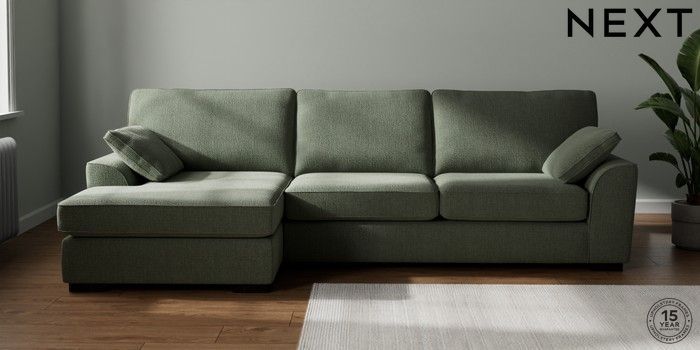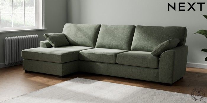 7.2.10 Buy Stamford Large Sofa Chaise - Left Hand Chunky Texture Mid Forest Green Large Square Angle - Dark from the Seasons online shop Click here to use our website with more accessibility support, for example screen readers