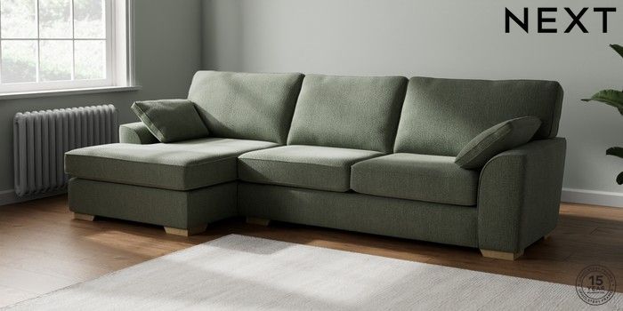 7.2.10 Buy Stamford Large Sofa Chaise - Left Hand Chunky Texture Mid Forest Green Large Square Angle - Light from the Seasons online shop Click here to use our website with more accessibility support, for example screen readers