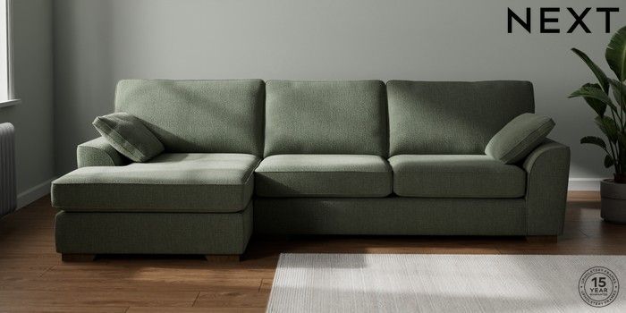 7.2.10 Buy Stamford Large Sofa Chaise - Left Hand Chunky Texture Mid Forest Green Large Square Angle - Mid from the Seasons online shop Click here to use our website with more accessibility support, for example screen readers