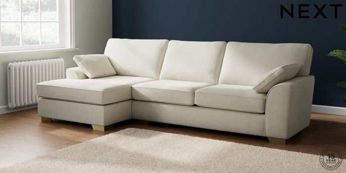 7.2.10 Buy Stamford Large Sofa Chaise - Left Hand Chunky Texture Oyster Large Square Angle - Brushed Brass from the Seasons online shop Click here to use our website with more accessibility support, for example screen readers