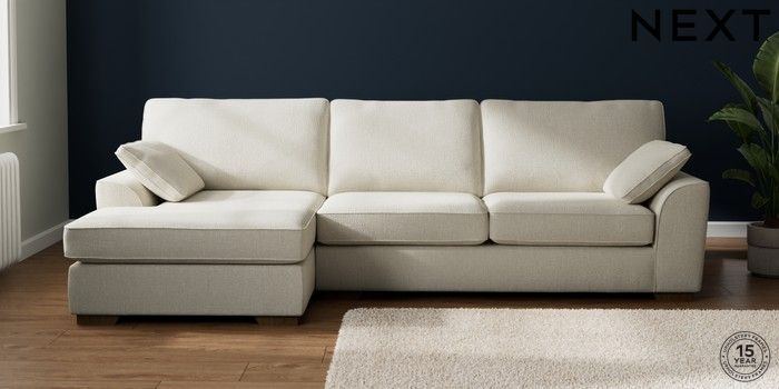 7.2.10 Buy Stamford Large Sofa Chaise - Left Hand Chunky Texture Oyster Large Square Angle - Mid from the Seasons online shop Click here to use our website with more accessibility support, for example screen readers