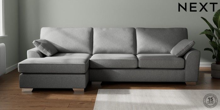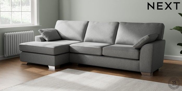 7.3.1 Buy Stamford Large Sofa Chaise - Left Hand Chunky Weave Mid Grey Large Square Angle - Chrome Metal from the Seasons online shop Click here to use our website with more accessibility support, for example screen readers