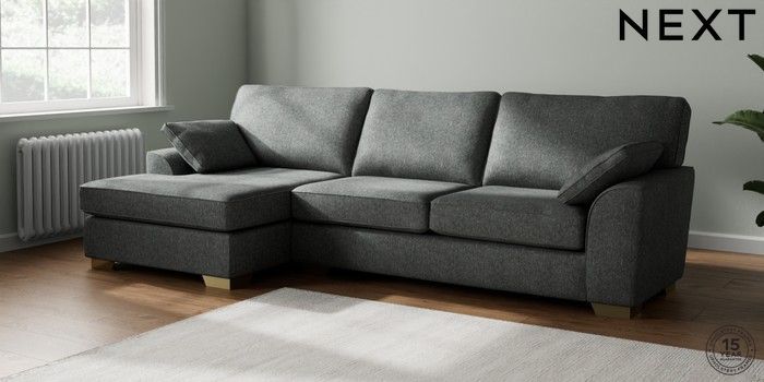 7.2.10 Buy Stamford Large Sofa Chaise - Left Hand Cotswold Chenille Dark Grey Large Square Angle - Brushed Brass from the Seasons online shop Click here to use our website with more accessibility support, for example screen readers