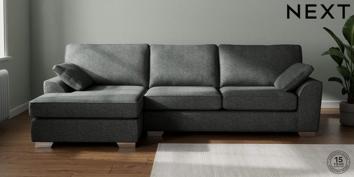 7.3.1 Buy Stamford Large Sofa Chaise - Left Hand Cotswold Chenille Dark Grey Large Square Angle - Chrome Metal from the Seasons online shop Click here to use our website with more accessibility support, for example screen readers