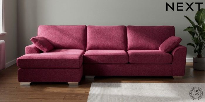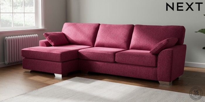 7.3.1 Buy Stamford Large Sofa Chaise - Left Hand Cotswold Chenille Dark Raspberry Pink Large Square Angle - Chrome Metal from the Seasons online shop Click here to use our website with more accessibility support, for example screen readers