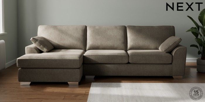 7.3.1 Buy Stamford Large Sofa Chaise - Left Hand Cotswold Chenille Mid Mink Brown Large Square Angle - Chrome Metal from the Seasons online shop Click here to use our website with more accessibility support, for example screen readers