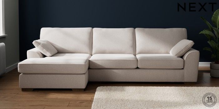 7.2.10 Buy Stamford Large Sofa Chaise - Left Hand Cotswold Chenille Oyster Large Square Angle - Mid from the Seasons online shop Click here to use our website with more accessibility support, for example screen readers