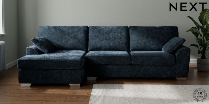 7.3.1 Buy Stamford Large Sofa Chaise - Left Hand Distressed Velour Midnight Blue Large Square Angle - Chrome Metal from the Seasons online shop Click here to use our website with more accessibility support, for example screen readers
